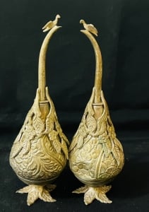 طقم فنتج يتكون من شمعدانين مع ساعة مكتبية قديمة