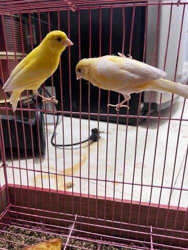 كناري عمره 3 أشهر بلون أصفر جميل و ثلاثة منهم من نوع ابو تاج