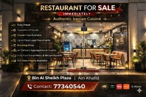للبيع مطعم كامل مع معداته مكانه في مدينة خليفه الشمال قريب المرور القديم ايجار المحل 11000 التواصل 50031199