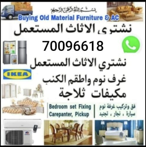 نقوم بشراء جميع المكيفات بأنواعها والمكيفات السكراب وجميع الاداوات المنزلية والغسالات والثلاجات والافران وجميع الاثاث المنزلي