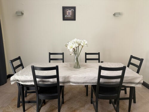 Selling Ilea extendable dining table with flower vase and table cover in excellent condition