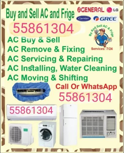 AC/ Selling and Fixing, Servicing, Repairing, Gass Filling, Cleaning, Removing.We Buye Used and Damage A/C.We Are Doing Work Whole Qatar. (Service 24 Hours).We Have Up To 9 Years Experience in A/C Section.We Have Won Car For Work.We Are Doing Work Low Price. WATAR QULAR FOR SELL Call and what’s 55861304