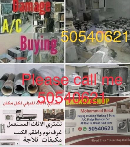 .Buying used AC Not working and working Buying a used refrigerator, gas and kitchen cabinet.washing machine. Buying all used household items furniture please call me 50540621