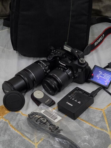 Canon 70D with kit lens 18-55mm and another extra zoom lens 70-300MM with touch screen and WiFi and original charger and bag and memory card with battery and all accessories