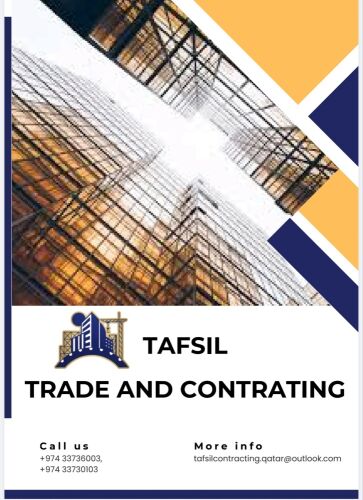 All maintenance work and services, All waterproof work, gypsum, decoration and tile work. All electrical work for maintenance and services, interior and exterior painting for homes and villas, all decoration work, plumbing work and pipe fittings. We have a specialized team for maintenance work, continuous service and guaranteed work .preparing shop drawings per (QCS & ASHGHAL ),Tiles work, surveying work, concrete structural work, installation of kerb stone and interlock paving work, with supervising etc
