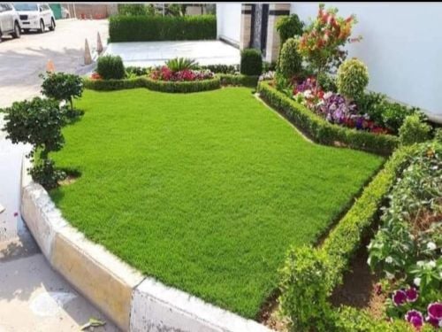 plant green grass and palms, make a modern irrigation network, plant permanent roses, and make all decorations