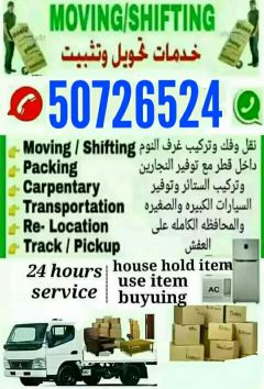 Moving all kind of Furnitures for Bedrooms/Home/Villas/ Offices. We will bubble wrap all of your items and protect them while in transit. Disposal house old items.. Buying A/c, and used furnitures.. Contact me: 70191165