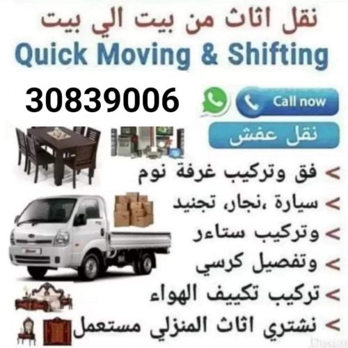 We do home, villa, office Moving / shifting.coll us : 3083 9006 We are expert to move all kinds of bed room set Furniture. We have expert carpenter for dismanting and fixing furniture . Our service is available all over Qatar. Ac-Fridge || Washing Machine Repair service any place, any time .. WhatsApp available 3083 9006