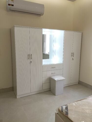 We sell all types of brand new home furniture, including large wooden beds, designer beds, single beds (steel and wood), double beds, large wardrobes (2, 3, 4, and 6 doors), all types of spring and orthopedic mattresses, shelves, dining tables, dressing tables, chairs, bedroom sets, and cushions. All home furniture is available for sale. Good quality at a reasonable price! WhatsApp/Call - 72106380