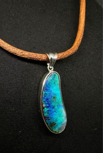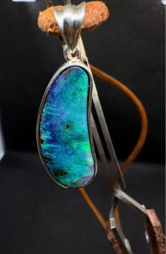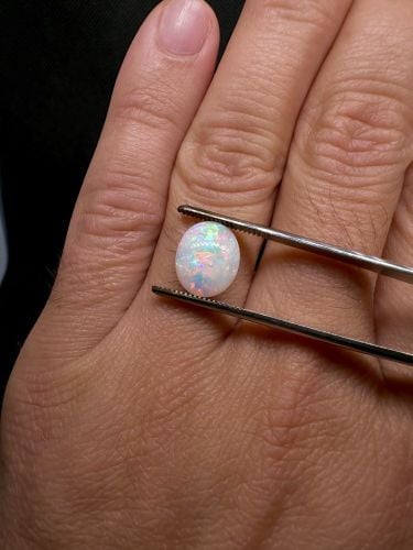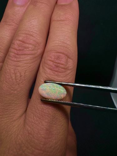 2.30 CTS Blue/green Australian crystal opal from Lighting Ridge set in a silver ring. Opal dimension: 10.3 X 8.4 X 4.5 mm Weight: 2.30 cts Size :7
