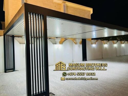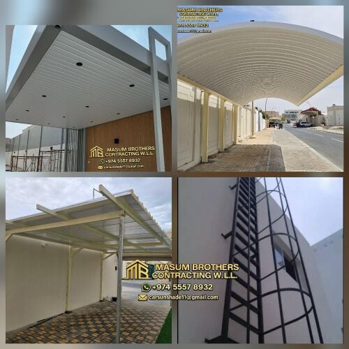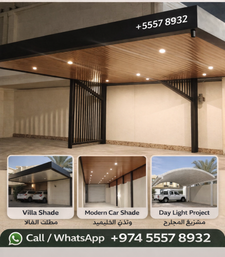 Car Parking Shade / Car Shed Steel Canopy & Car Shade Manual & Sliding Gate Steel Fence & Corrugated Sheet Fence Steel Staircase & Ladder Store Room & Portable Cabin Metal Roofing Installation Strong & Durable Materials Neat Finishing Reasonable Price Experienced Workers Contact / WhatsApp: +974 5557 8932