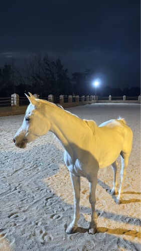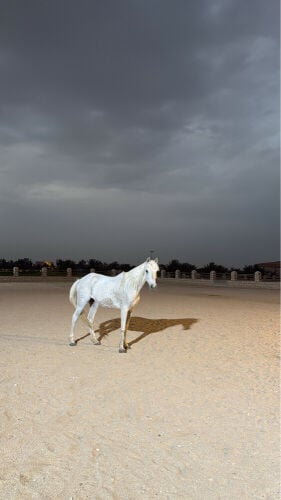 Beautiful Arabian mare, Rahaf Najd, 12 years old, registered with Qatar Arabian Horse Registry. Daughter of the well-known sire Karam Al Shaqab, with proven pedigree and tested parentage. Well-bred mare suitable for breeding or show potential. Healthy,and raised in Qatar. Details: * Age: 12 years * Gender: Mare * Origin: Qatar * Registration available