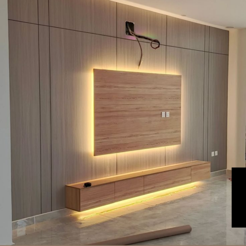 Reliable interior works tailored for residential spaces. Our scope includes upholstery service, curtain setup, TV cabinet fitting, wall units, painting, parquet flooring, wallpaper installation, barkia, and bed fabrication. Free site visit included.