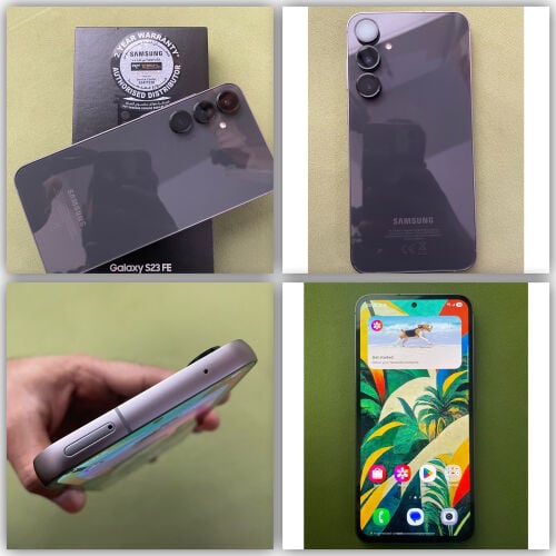 Samsung s23FE (8-256GB) variant official phone Qatar local phone (I bought new. my personal phone ) no any problem all working condition full fresh original Box available no, any issue all perfect condition duall physically sim,✅ battery backup good✅ original Box available ✅ you come my location najma check my mobile no problem everything okay?