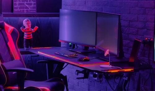 PC 3 Monitors Mouse Keyboard Mousepad Headset