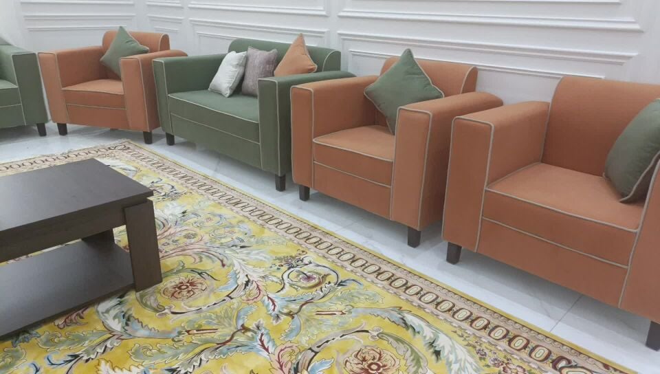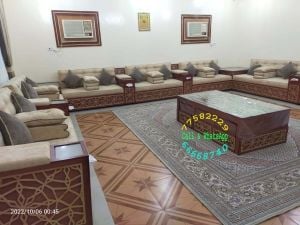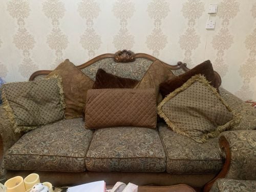 Sofa including one big table and two medium tables on the sides. Used perfectly