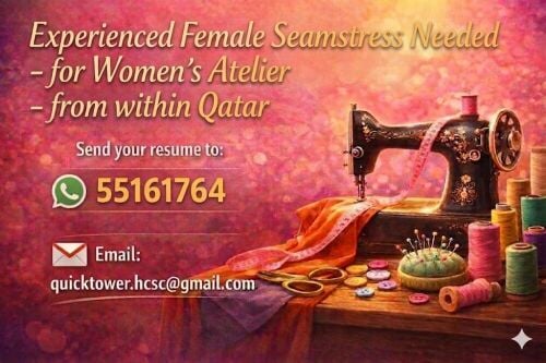 A women's clothing designer is required to work in a women's sewing store with at least 3 years of experience in the Gulf, identifying cutting works and taking measurements that speak little from Filipino or Indian nationality in Doha or outside Qatar Call 70461661