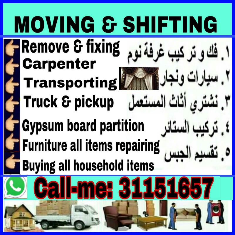 moving and shifting Insaed Qatar home. office. remove garbage delivery anytime available