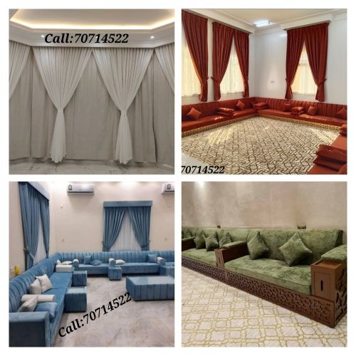 تفصيل وتنجيد مفروشات تنجيد كنب وكراسي بيع تفصيل وتركيب ستائر بيع وتركيب سجاد تركيب باركيه تركيب موكيت يوجد عشب تركيب ورق جدران