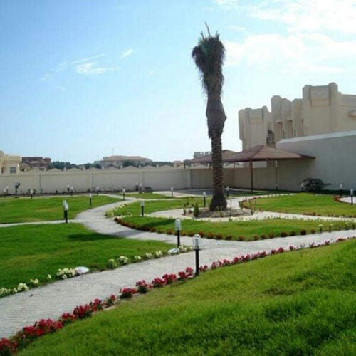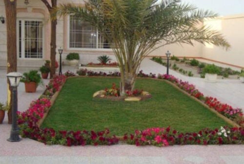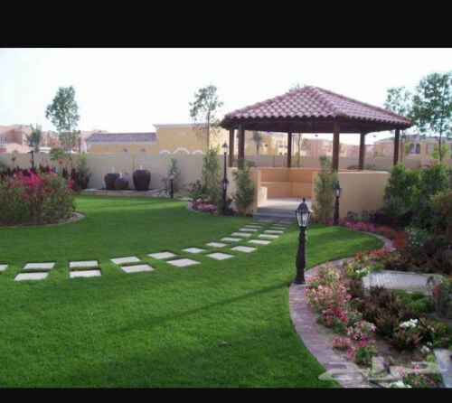 مزارع ومنسيق حدائق وزراعة العشب الأخضر النخيل والزهور وتوفير الطين والسماد وعمل شبكات الري الحديثة وتنسيق وترتيب الحدائق وقص الحشيش وتقريب النخيل والم