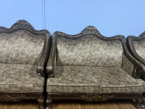 solid wood sofa and antique table