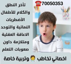 اخصائي تخاطب وتربية خاصة ..حالات التأخر اللغوي والنطق والكلام للأطفال .الاعاقة العقلية ومتلازمة داون .الاضطرابات النمائية والتوحد .صعوبات التعلم .