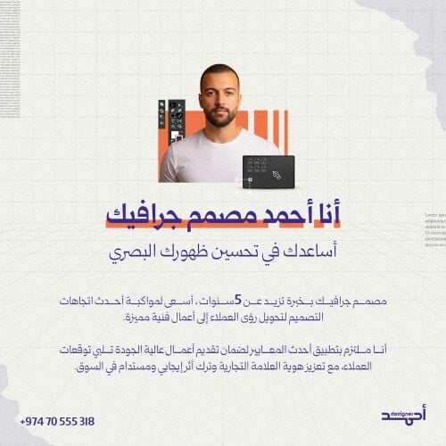 مصمم جرافيكي بخبرة تزيد عن خمس سنوات، عملت خلال مسيرتي مع مجموعة متنوعة من الشركات والجهات، مما منحني رؤية واسعة وشاملة في مجالات التصميم المختلفة. ا