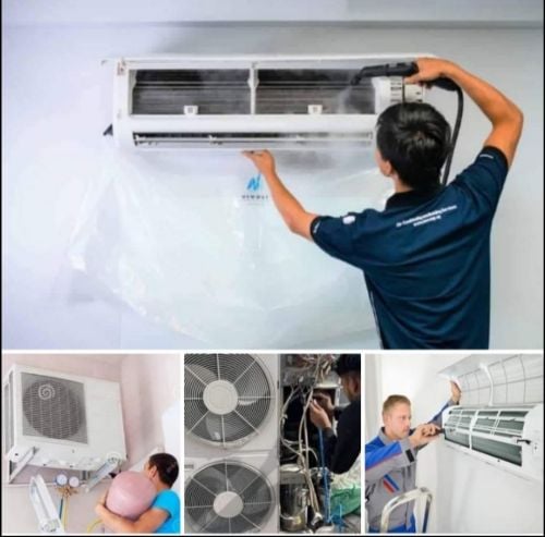 خدمة تنظيف مكيفات الهواء بمضخة ضغ