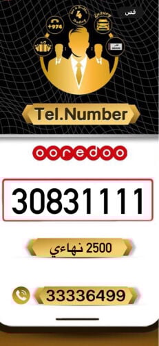 شرائح او ارقام اوريدو مميزات جدا الرقم الموجود علي صورة الاعلان ورقم الاعلان نفسه وهذا الرقم 33382242للبيع للصامل التواصل واتساب فقط علي رقم اكاونت الاعلان والسعر نهائي ...