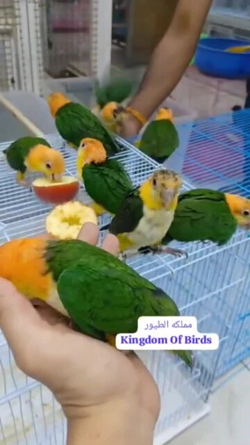 اليف يتكلم و يسلم و يقول كلمات ثانيه ريشه مقصوص من فتره بس يطير ع خفيف و يبيله قص اضافر ، معاي من اول ما طلع من البيضه لين اليوم و عمره سنه و ست شهور لا تاكله حب الا اذا بتدربه و ياكل فواكه و اكل خاص عشان ما يتضرر