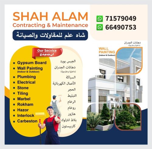 نقدم افضل اسعار لأعمال المقاولات والخدمات الصيانة الفلل ( أعمال الجبس بورد - الصبغ - بلاط والرخام و الحجر - اعمال السباكة والكهرباء -اعمال تركيب انترلوك وكربستون ارقام التواصل الواتساب 71579049 - 66490753