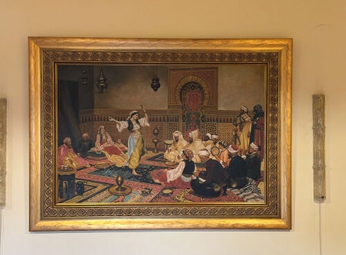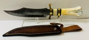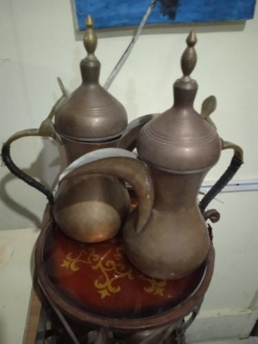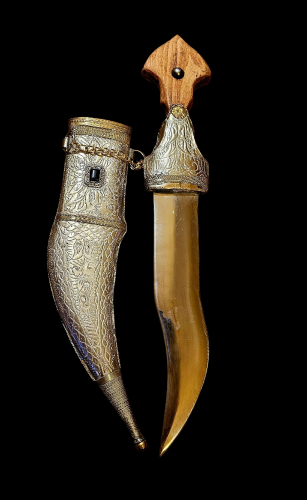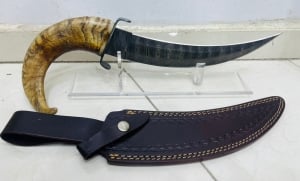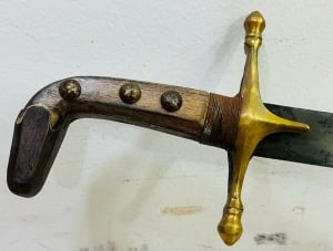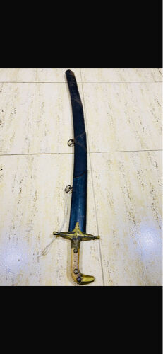 سيف جوهر دمشقي قديم عثماني النصل جوهر مختوم والقبض عربية من القرن والفضة والغمد من الجلد والخشب الطول ٨٨ سم