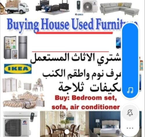 شراء اثاث بيت غرفة نوم وغرف اطفال مكيفات بآنواعها جميع ادوات المطبخ الكهربائيةمن غسالات وبرادات ونقوم بشراء الكنب والتلفزيونات بأنواعها وجميع ادوات المطبخ نشتري جميع انواع المكيفات ولدينا سيارة لنقل الاثاث