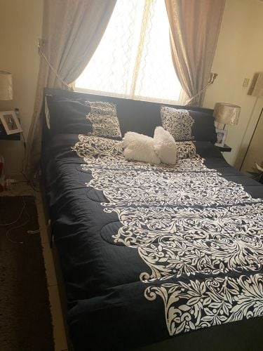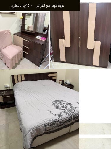 غرفة نوم استخدام بسيط ما زالت جديده مقاس السرير ١٨٠ *٢٠٠سم ، مع فرشة جديده ، ٢ كومودينو + كبت (خزانة) ملابس المكان دحيل .