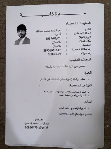 باكستاني مواليد السعوديه ابحث عن عمل لفتره بسيطه فقط 51099916