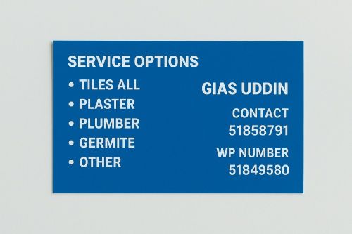 أعمل في تركيب البلاط الإنترلوك أعمال اللياسة (القصارة) والدهان. لدي خبرة في تشطيب المباني الداخلية والخارجية وألتزم بالجودة والدقة في العمل.