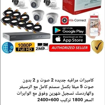 كاميرات مراقبه جديده 2 صوت و 2 بدون صوت 5 ميقا بكسل سستم كامل مع الرسيفر والهاردسك تسجيل شهرين وفوق مع الوايرات السعر 1800 تركيب 600=2400