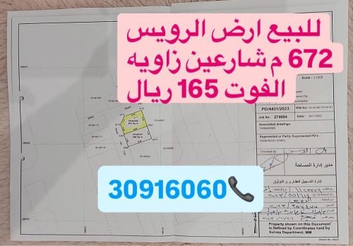 ارض مميزه الرويس 672 م شارعين