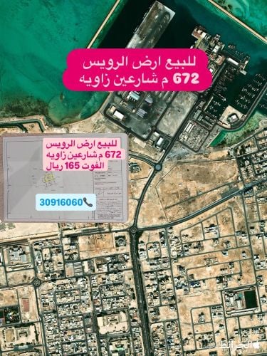 للبيع ارض بالرويس 672 م شارعين