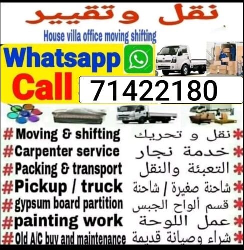 نقل اثاث المنزل وجميع انواع غرف نوم مع الفك والتركيب والتغليف وفك الستائر والمكيفات والمجمعات وجميع الاغراض المنزل ونقل في أي مكان في الدوحه وحفظ على الاغراض اثناء النقل التواصل على الرقم