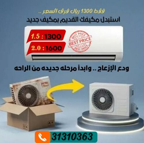عرووض مكيفات جري بأسعار وهميه. (شركة الحواه ) موزع معتمد مكيفات جري يوجد لدينا مكيفات بأسعار فى متناول الجميع تبدأ من1700 للطن ونصف متاح جري _ ميديا _ هايسنس _ هومر _ فريجو _ اون اند سيس جميع انواع المكيفات بيع وصيانة وأسعار خاصه للكميات بكل انواعها كما يوجد مبرد مياه الخزان طن ونصف حتى 700 جالون واثنين طن حتى 1000 جالون ضمان خمس سنوات ع الكمبروسر وسنه للصيانه شامل متوفر جميع الاحجام يمكنك الاتصال للاستفسار عن الاسعار او زيارتنا بفرع المشاف ويمكن الطلب من خلال الهاتف والدفع داخل موقع التركيب كاش او عن طريق الفيزا مع اخذ الفاتوره والضمان كما يوجد ورشة لأعمال الصيانه الدوريه غسيل. شحن غاز. علاج نزول الماء 75 ريال لأكثر من خمس مكيفات فك ونقل وتركيب من وإلى اى مكان ع مدار الساعة.