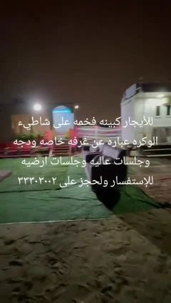 كبائن للايجار مع الجلسات الخارجيه مقابل البحر ويوجد لدينا العديد من انواع الكبائن للمزيد من المعلومات الرجاء التواصل معانا:- 0097455727523