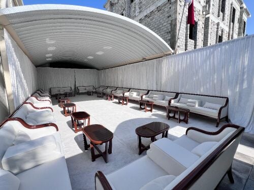 نوفر تركيب مظلات مواقف السيارات وخيام المناسبات والتخييم في جميع أنحاء قطر. خامات عالية الجودة وهياكل قوية مقاومة للحرارة والطقس. مناسبة للمنازل والأعراس والحفلات والاستخدام الخارجي. خدمة سريعة وعمل احترافي بأسعار مناسبة. اتصل أو راسلنا الآن للحصول على أفضل سعر.