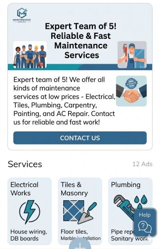 Expert team of 5! We offer all kinds of maintenance services at low prices - Electrical, Tiles, Plumbing, Carpentry, Painting, and AC Repair. Contact us for reliable and fast work!" Does that work for you?