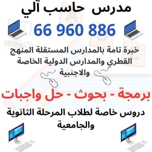For: University, MoEHE, CBSE, IB, IGCSE, Cambridge, American, Philippines (Any age group) Subjects: Computer Science, IT, Artificial Intelligence, ICT, Experience: 18 years in tutoring and mentoring Sessions: 1:1 or small groups, flexible hours (after working hours/weekends) Focus: Syllabus mastery, exam prep, coding, assignments/projects, real-world skills Location: Online or in-person (Qatar) Please contact