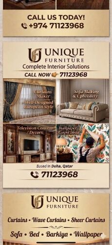 Make and upholster (wallpaper chairs, furniture, sofas, etc), Selling and installing curtain, wallpaper and all kind of painting