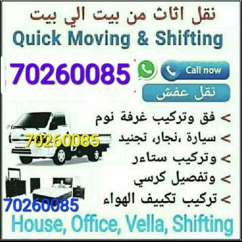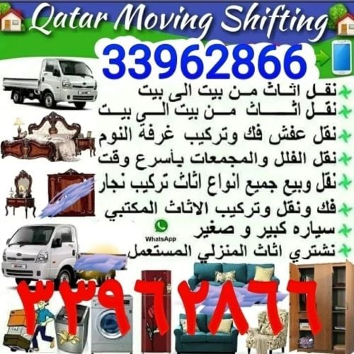 moving/shifting. we are expert to move all kinds of house hold items & villa, office furniture. we have expert carpenter for dismaintling & Assembling all type furniture items.our services includes here. Room, villa, office furniture shifting. +97466519765 whatsapp Bad room set removing & fixing. Packing furniture items. Carpentery. Gypsum board partition. our service available whole qatar.non stop holiday. any time call me. 66519765