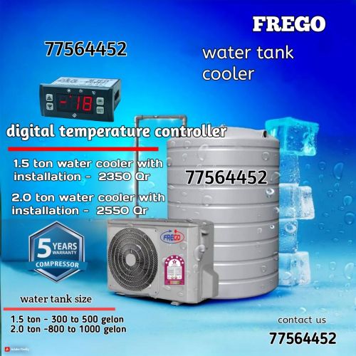 بيع وتركيب مبرد خزان مياه جديد. ماركة فريجو مع جهاز تحكم رقمي في درجة الحرارة. شاهد درجة حرارة 77564452تسخين وتبريد المياه. ٧٧٥٦٤٤٥٢