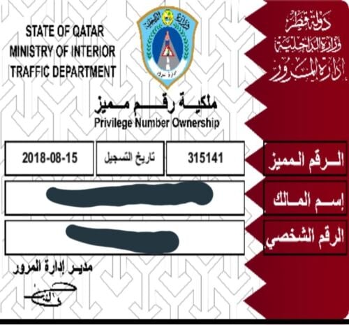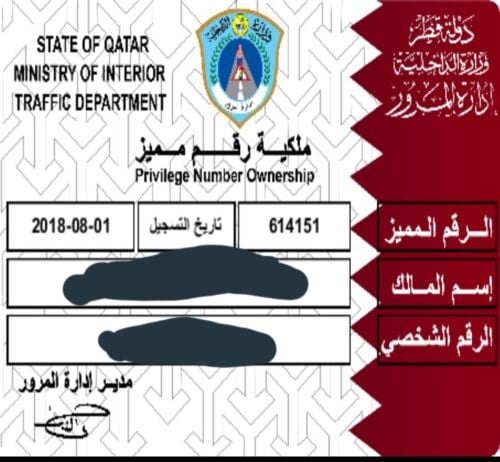 رقم مميز نازل بالمرور