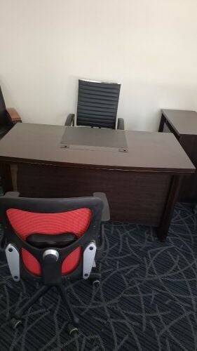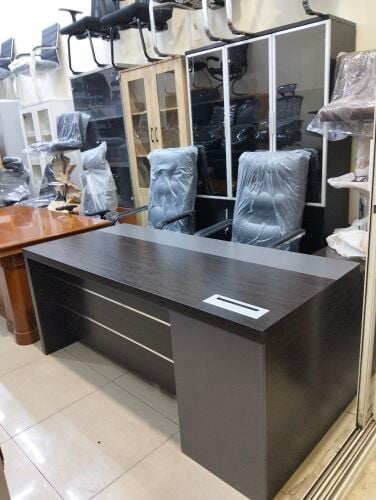 طاولة مكتب تفصيل شركة "الخزانة" استعمال بسيط جداً، طول 160 سم، مع كرسي مكتب طبي